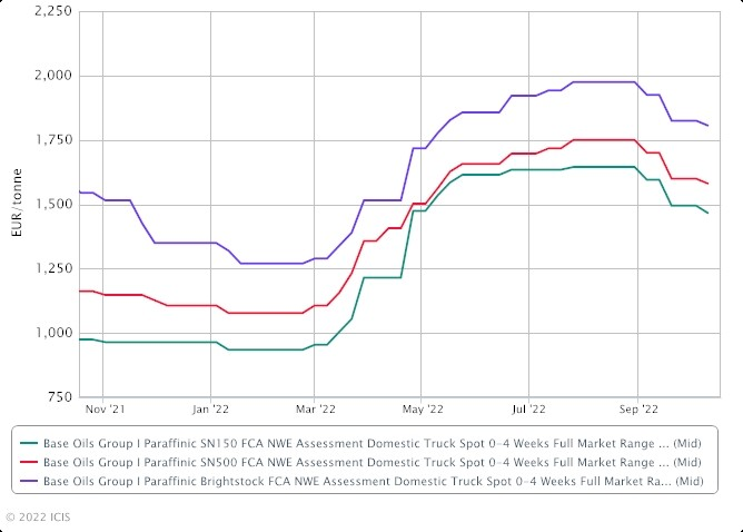 There were prices heard either side of the range this week but the majority of feedback was within the publishedrange.There was unconfirmed deal for brightstock at the ICIS midpoint this week.Views on availability are mixed. While some players see supply from most refineries and ample availability tocover requirements, other players see less supply in the market for October.